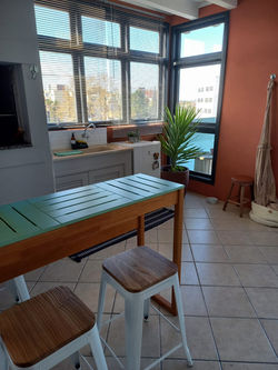 Proporcionando praticidade e funcionalidade no dia a dia dos clientes, a cozinha teve inspiração industrial vista nos revestimentos e na utilização do preto e metálico.